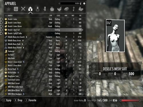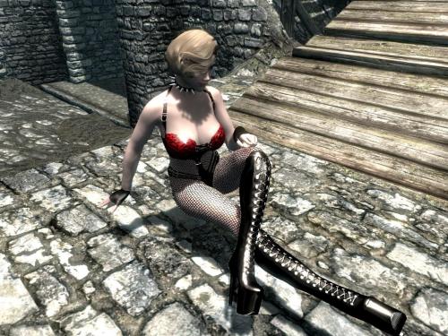 This mod is based on an latex outfit worn by Maggie Delena. The outfit is named after Helviane Desele from The Elder Scrolls III: Morrowind. She owns Desele's House of Earthly Delights in the town of Suran.