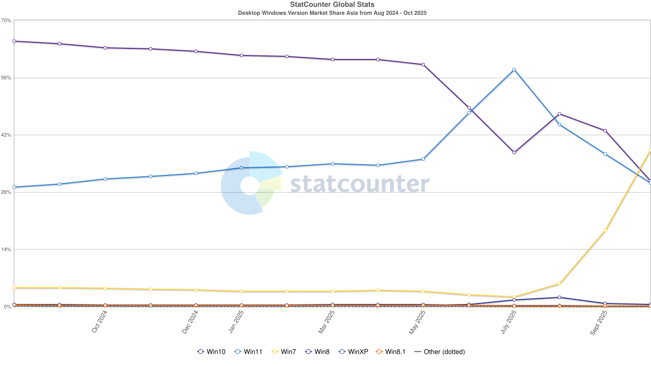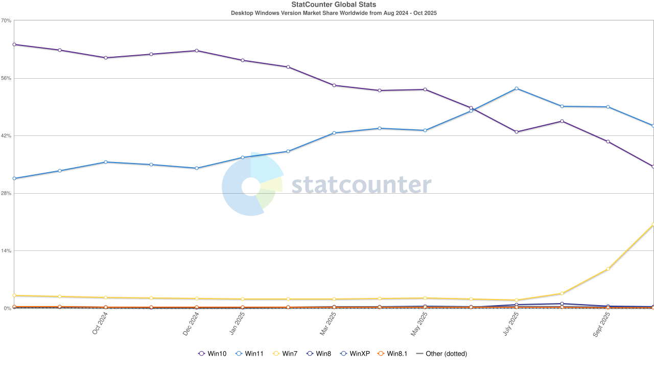 Doublezero Posted Saturday at 05:54 PM Author Posted Saturday at 05:54 PM 15 hours ago, ritualclarity said: He only performed a basic analysis of the StatCounter data. From what I've seen, the majority of Windows 7's market share gains are in Japan and Germany. It would be hilarious if people were really going back to Windows 7 instead of 11, and I could see Microsoft going after websites that host Windows ISOs. Of course, this assumes that the StatCounter data is correct. Quote